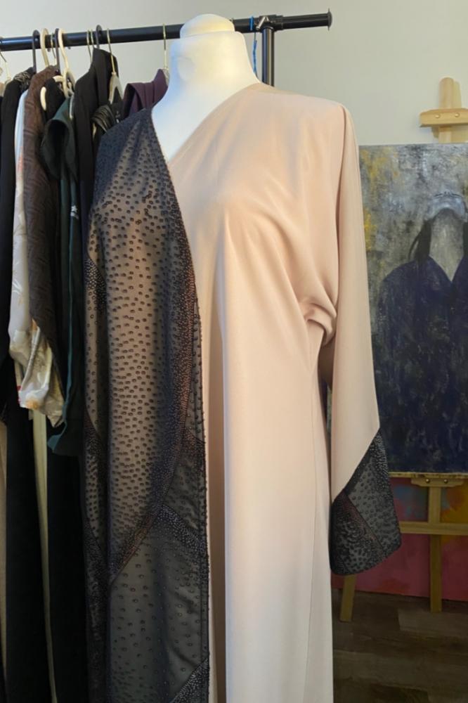بين نعومة البيج وأناقة الأسود الشفاف، تنسج هذي العباية قصة فريدة من نوعها. تصميمها الجريء بنصّين متقابلين، يجمع بين الرقة والجرأة في قطعة وحدة، وكأنك تلبسين لوحة فنية! مثالية لكل سيدة تحب تكون مختلفة وتلفت الأنظار بذوق راقٍ وغير تقليدي.