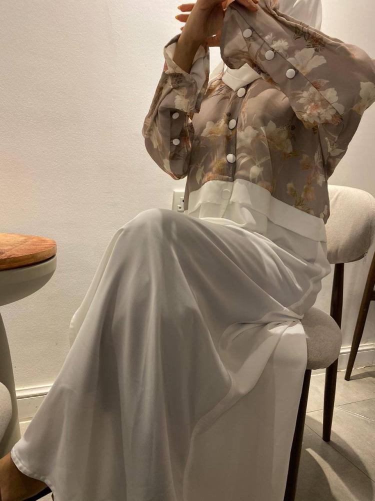 كريب اوف وايت وشيفون + طرحة اوف وايت